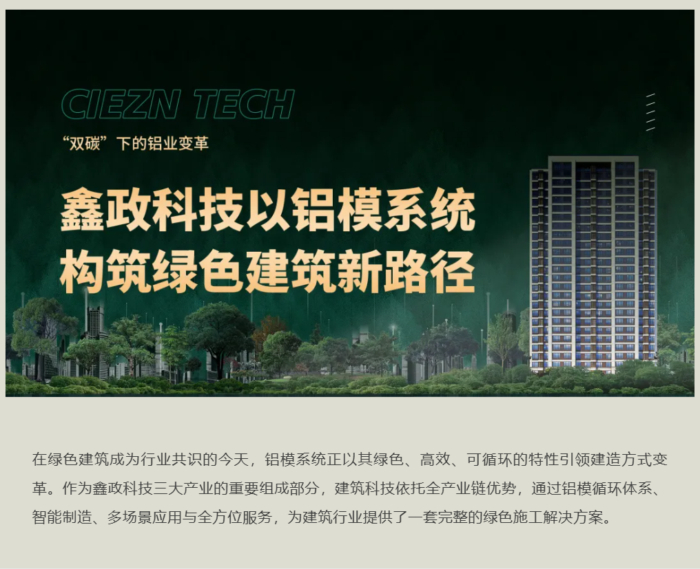 目前,鑫政鋁模市場占有率已躋身行業第一方陣。未來,鑫政將繼續以創新為驅動,通過鋁模系統的持續升級與服務優化,在這條嶄新的綠色發展路徑上,與合作伙伴攜手共建綠色、低碳、可持續的建筑未來。